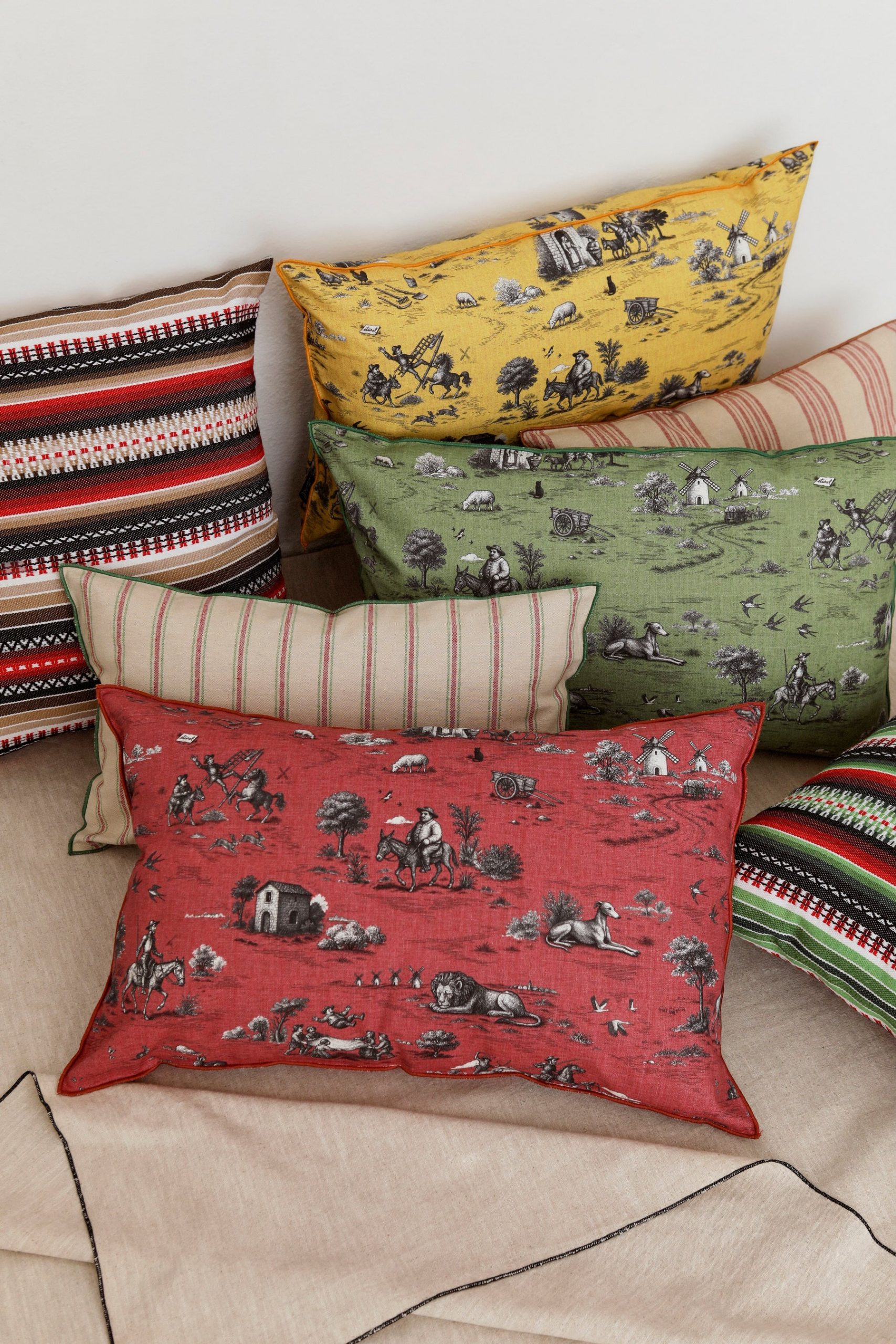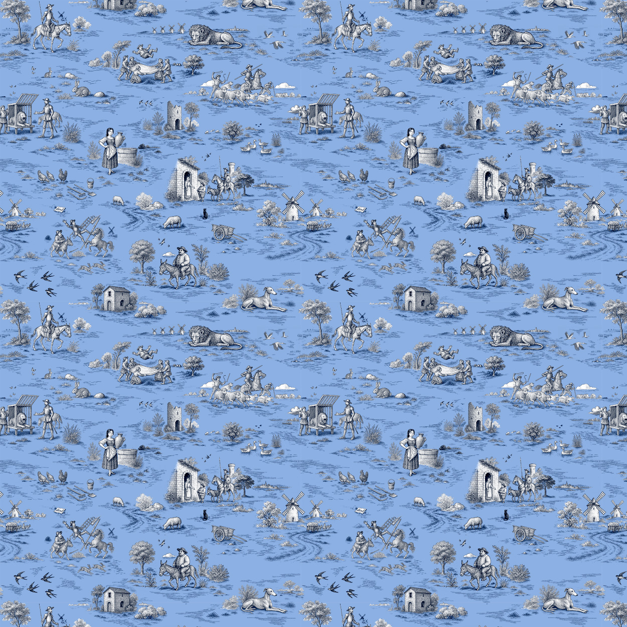 El encargo partía de una idea clara: diseñar una nueva tela para la colección de primavera sustituyendo la narrativa francesa del Toile de Jouy por un imaginario propio basado en Don Quijote de la Mancha.
